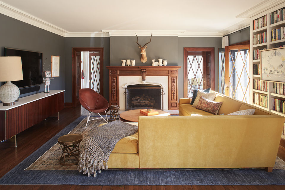 mid-century finishes highlight all the wood work details of this 1917 original.